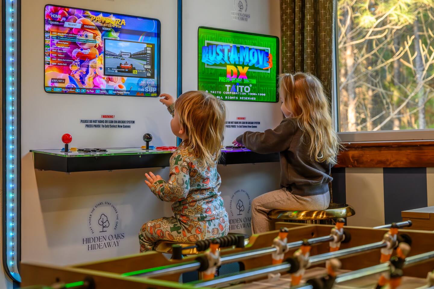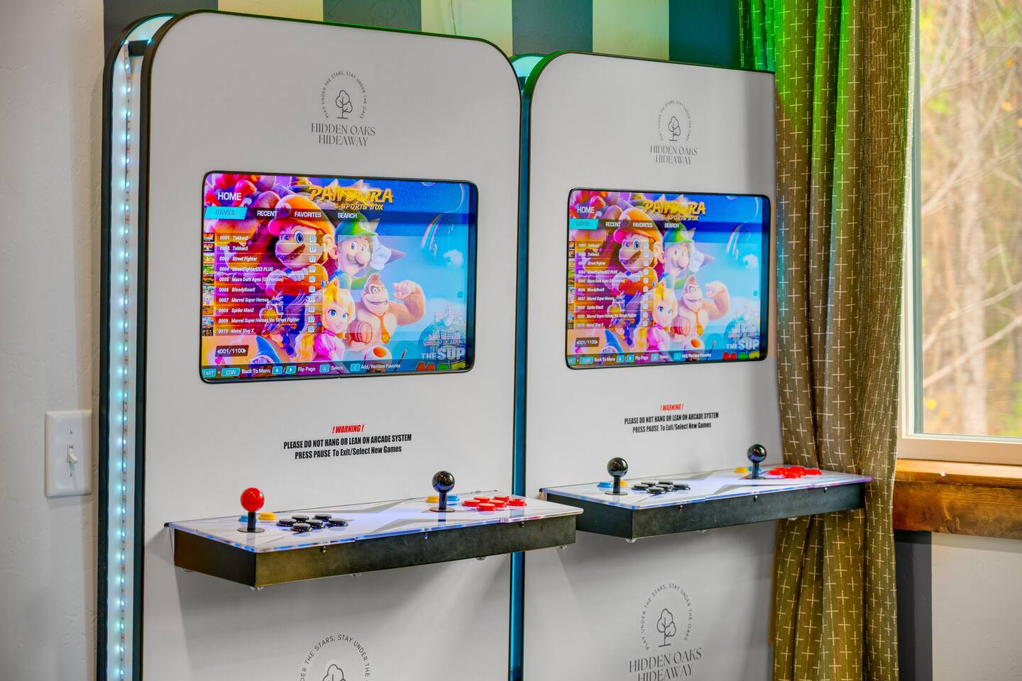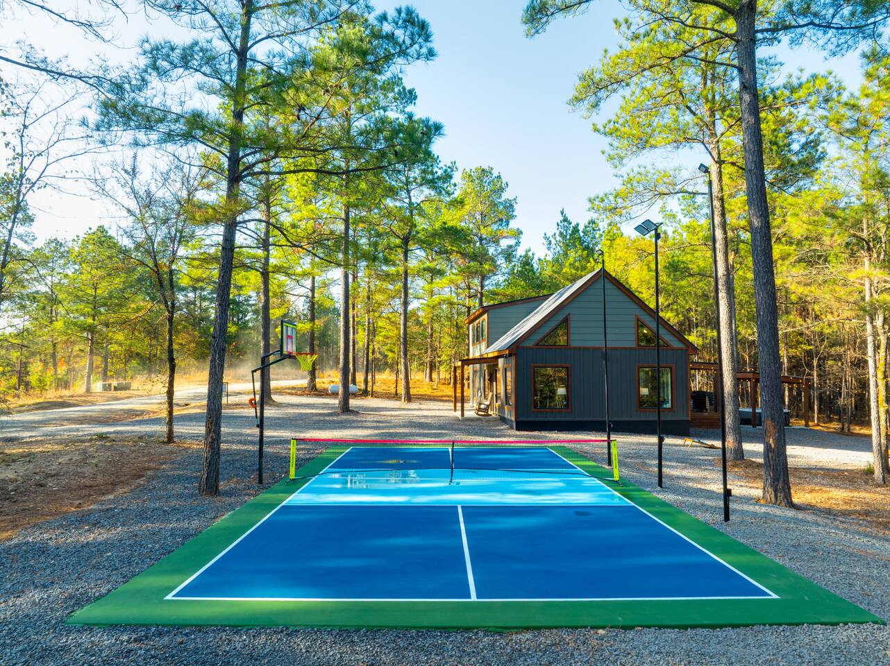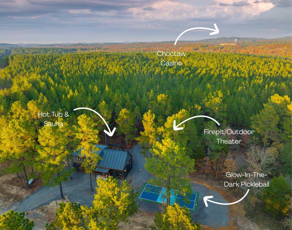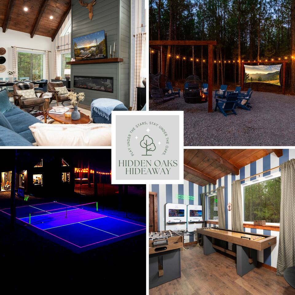 ✨ Hidden Oaks Hideaway - Where Luxury Meets Nonstop Fun in the Broken Bow Woods ✨ Welcome to Hidden Oaks Hideaway, a spacious 2,000 sq ft retreat tucked away on 1.5 acres of peaceful forest - perfect for families, friends, and group getaways. This modern cabin sleeps up to 15 guests with 4 bedrooms and 3 bathrooms, all designed for comfort, connection, and unforgettable fun. Step inside to soaring vaulted ceilings, large windows with serene forest views, and an open living area ideal for gathering. Cozy up by the stone fireplace or enjoy movie nights on the 65" Smart TV. The fully stocked kitchen includes: ☕ Keurig Coffee Maker 👩🏻🍳 Crock Pot, Blender, Mixer, Griddle, Toaster 🍴Plenty of Cookware, Utensils & Serveware Enjoy meals together with seating for 10 at the dining table plus 5 at the island - perfect for celebrations, holidays, and family feasts. 🌲 Outdoor Oasis Your private outdoor playground includes: 🏓 THE ORIGINAL Glow Pickleball / Basketball Court 🎬 Outdoor Movie Theater w/ Projector & Screen 🔥 Cozy Fire Pit Lounge ♨️ Cedar Sauna + Hot Tub on Lower Deck 🍔 Patio with Grill, Outdoor Dining Table 🍻 Covered Lounge Area w/ Outdoor Fireplace 🎨 Custom Broken Bow Mural 🛝 Kids’ Playground 🛶 Paddleboards, Kayaks & Life Jackets 🅿️ Parking for 6 vehicles + Trailer/Boat Space ⚡ EV Charger 🛏️ Bedrooms & Bathrooms - 1 King Suite w/ Sleeper Sofa & Ensuite Bath - 1 Queen Bedroom w/ Main Level Bathroom - 1 Double Queen Bedroom - 1 Bunk Room with 2 Full and 1 Twin Trundle Bed - Shared Upstairs Bathroom 🎮 Fun for Everyone! The upstairs loft game room is an entertainment paradise: 🥌 Shuffleboard 🥅 3-in-1 game table (foosball, air hockey, ping pong) 👾 2 arcade machines w/ 1,000+ classic games ♟️ Board games for all ages 🐾 Additional Amenities - Pet-friendly (fee applies) - High-speed WiFi - Pack ’n Play + highchair provided 📍 Location You’ll be close to everything Broken Bow has to offer: - 7 min – Hochatown dining & breweries - 8 min – Choctaw Landing Casino - 16 min – Broken Bow - 17 min – Beavers Bend State Park - 19 min – Broken Bow Lake 🌟 Perfect for Relaxation, Adventure & Memory-Making Whether you're soaking in the hot tub under twinkle lights, challenging friends to pickleball, or watching a movie under the stars, Hidden Oaks Hideaway is designed for connection, comfort, and unforgettable experiences. We’re committed to making your stay exceptional. If you need anything during your visit, we’re just a message away. 🌿 Before Booking Our cabin is nestled deep in beautiful Broken Bow forest. While we schedule regular professional pest control, sightings of insects or critters are still possible in wooded areas. Please keep doors closed and store food properly.