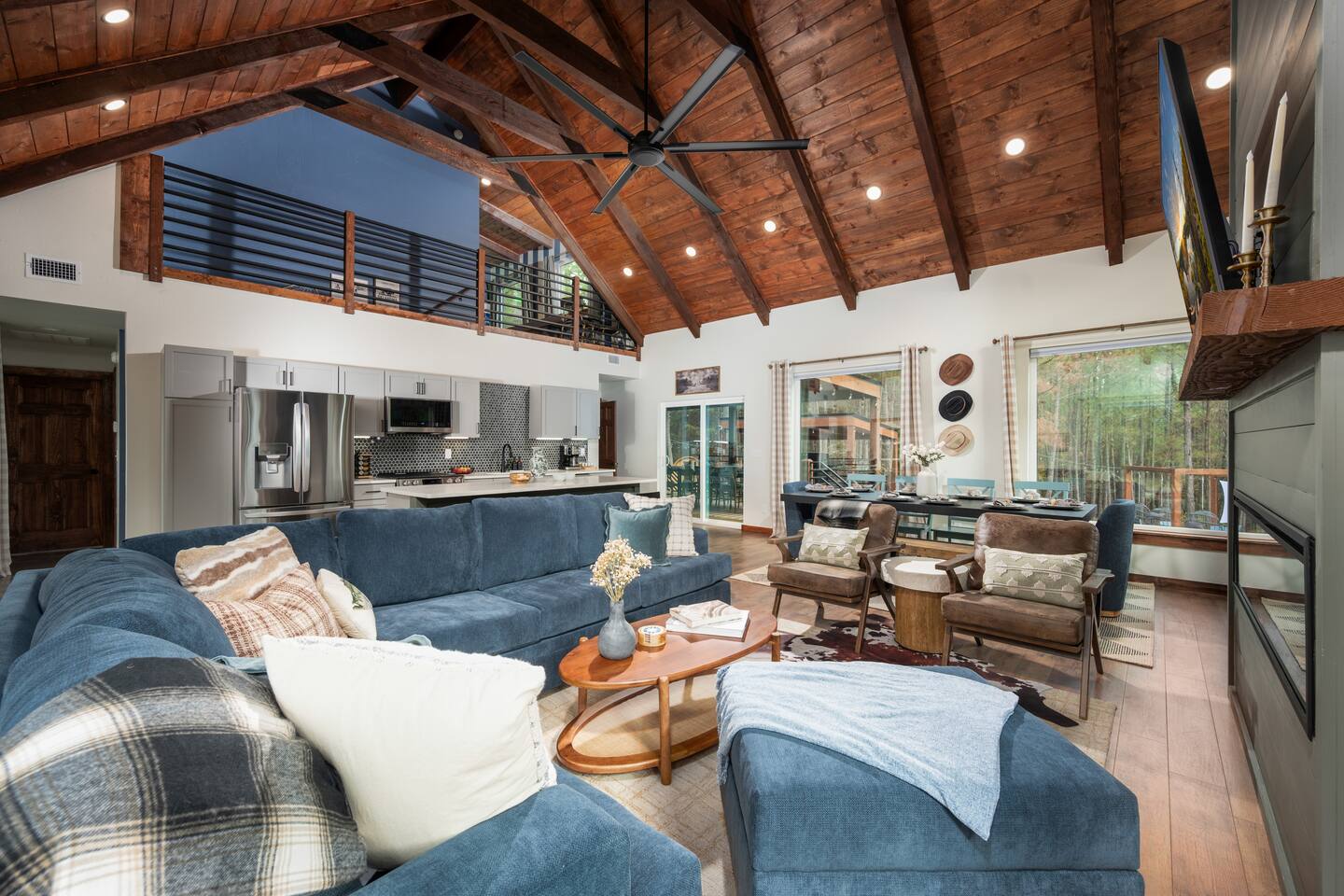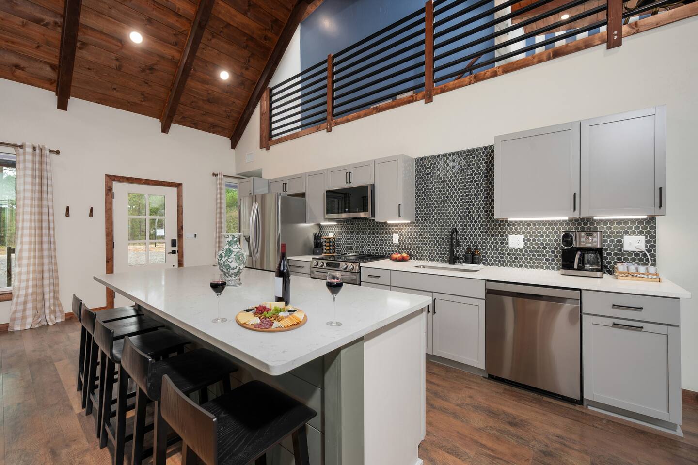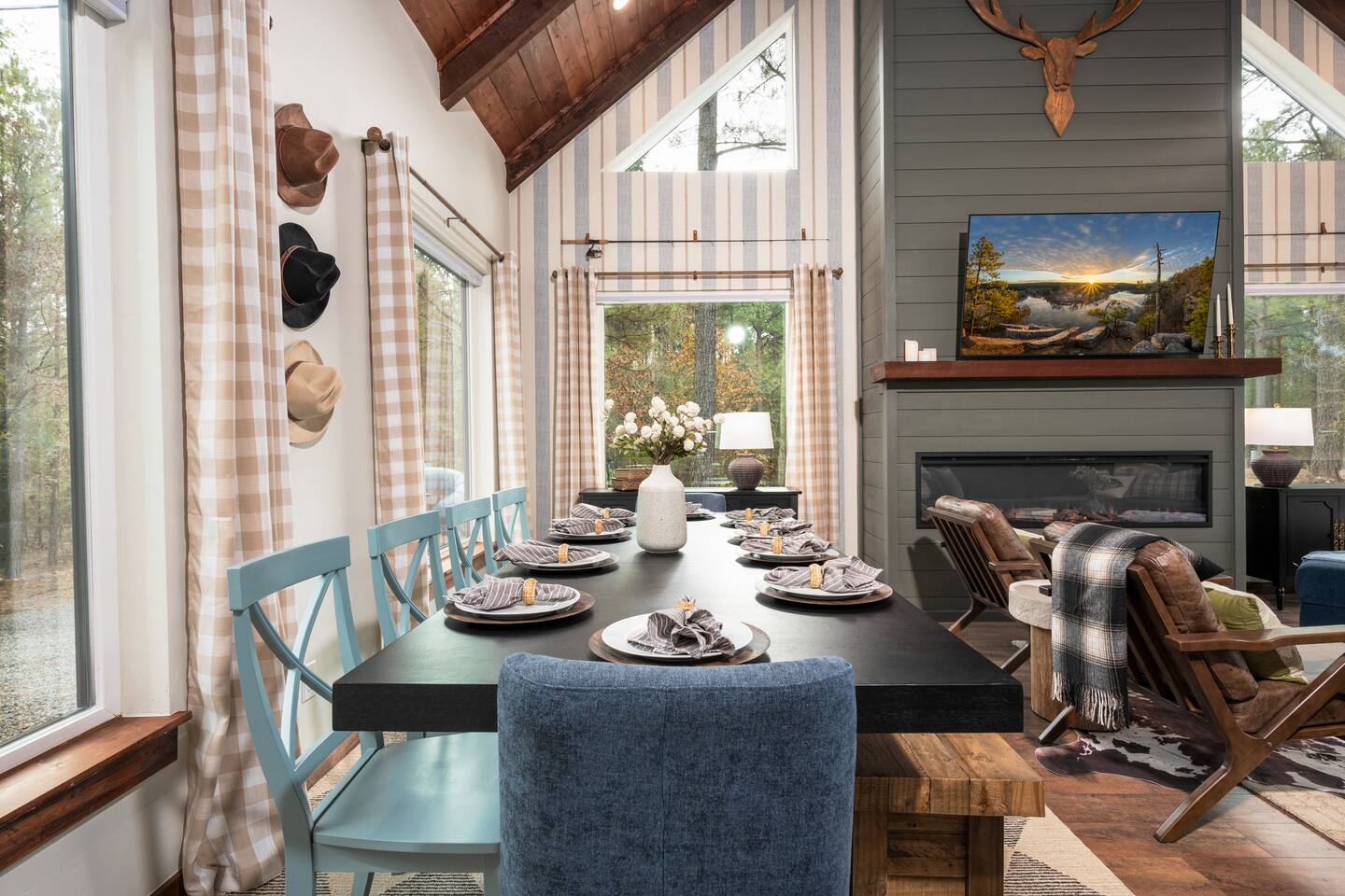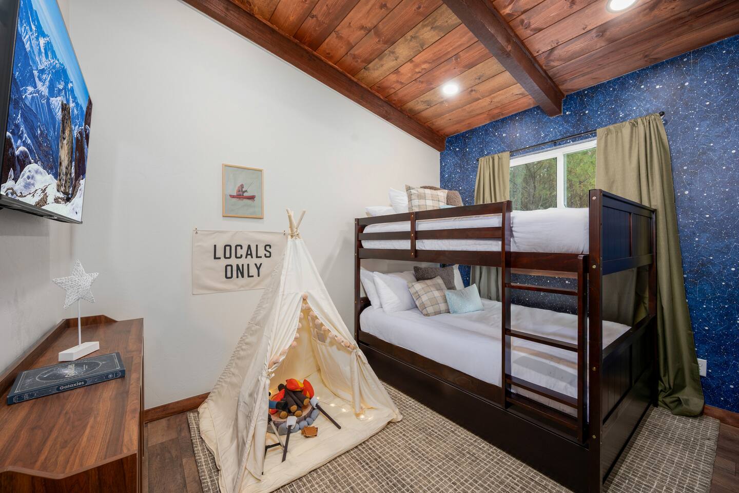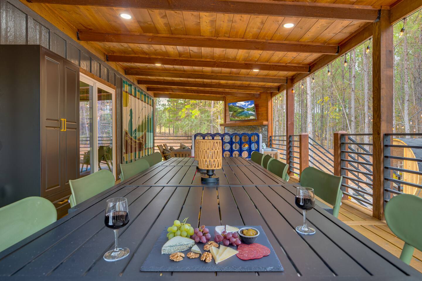 ✨ Hidden Oaks Hideaway - Where Luxury Meets Nonstop Fun in the Broken Bow Woods ✨ Welcome to Hidden Oaks Hideaway, a spacious 2,000 sq ft retreat tucked away on 1.5 acres of peaceful forest - perfect for families, friends, and group getaways. This modern cabin sleeps up to 15 guests with 4 bedrooms and 3 bathrooms, all designed for comfort, connection, and unforgettable fun. Step inside to soaring vaulted ceilings, large windows with serene forest views, and an open living area ideal for gathering. Cozy up by the stone fireplace or enjoy movie nights on the 65" Smart TV. The fully stocked kitchen includes: ☕ Keurig Coffee Maker 👩🏻🍳 Crock Pot, Blender, Mixer, Griddle, Toaster 🍴Plenty of Cookware, Utensils & Serveware Enjoy meals together with seating for 10 at the dining table plus 5 at the island - perfect for celebrations, holidays, and family feasts. 🌲 Outdoor Oasis Your private outdoor playground includes: 🏓 THE ORIGINAL Glow Pickleball / Basketball Court 🎬 Outdoor Movie Theater w/ Projector & Screen 🔥 Cozy Fire Pit Lounge ♨️ Cedar Sauna + Hot Tub on Lower Deck 🍔 Patio with Grill, Outdoor Dining Table 🍻 Covered Lounge Area w/ Outdoor Fireplace 🎨 Custom Broken Bow Mural 🛝 Kids’ Playground 🛶 Paddleboards, Kayaks & Life Jackets 🅿️ Parking for 6 vehicles + Trailer/Boat Space ⚡ EV Charger 🛏️ Bedrooms & Bathrooms - 1 King Suite w/ Sleeper Sofa & Ensuite Bath - 1 Queen Bedroom w/ Main Level Bathroom - 1 Double Queen Bedroom - 1 Bunk Room with 2 Full and 1 Twin Trundle Bed - Shared Upstairs Bathroom 🎮 Fun for Everyone! The upstairs loft game room is an entertainment paradise: 🥌 Shuffleboard 🥅 3-in-1 game table (foosball, air hockey, ping pong) 👾 2 arcade machines w/ 1,000+ classic games ♟️ Board games for all ages 🐾 Additional Amenities - Pet-friendly (fee applies) - High-speed WiFi - Pack ’n Play + highchair provided 📍 Location You’ll be close to everything Broken Bow has to offer: - 7 min – Hochatown dining & breweries - 8 min – Choctaw Landing Casino - 16 min – Broken Bow - 17 min – Beavers Bend State Park - 19 min – Broken Bow Lake 🌟 Perfect for Relaxation, Adventure & Memory-Making Whether you're soaking in the hot tub under twinkle lights, challenging friends to pickleball, or watching a movie under the stars, Hidden Oaks Hideaway is designed for connection, comfort, and unforgettable experiences. We’re committed to making your stay exceptional. If you need anything during your visit, we’re just a message away. 🌿 Before Booking Our cabin is nestled deep in beautiful Broken Bow forest. While we schedule regular professional pest control, sightings of insects or critters are still possible in wooded areas. Please keep doors closed and store food properly.