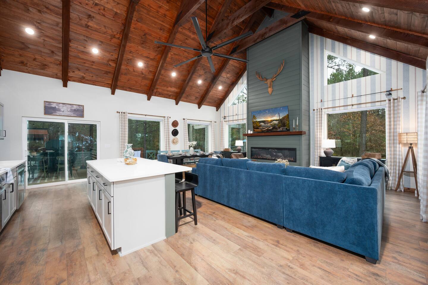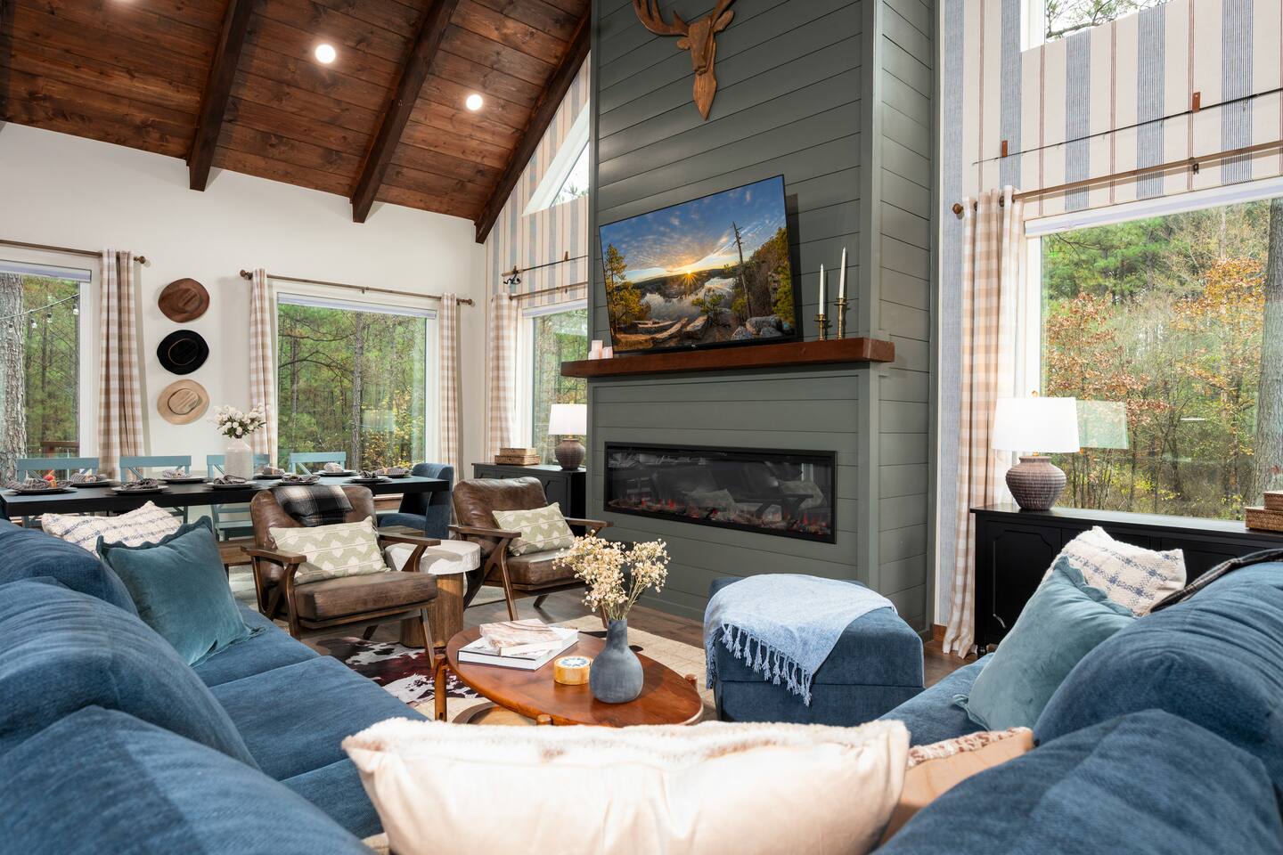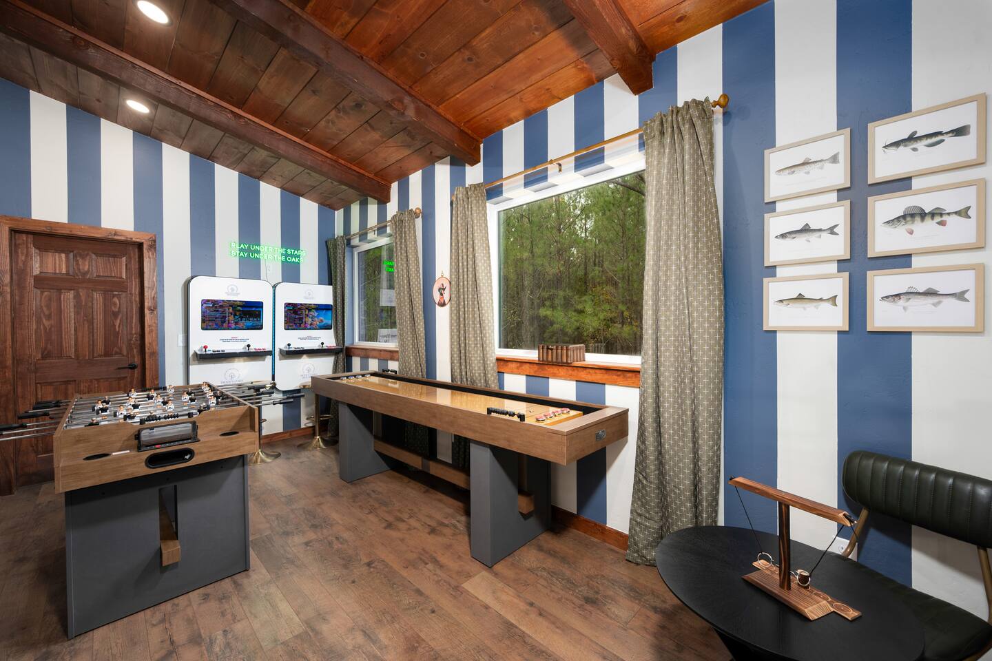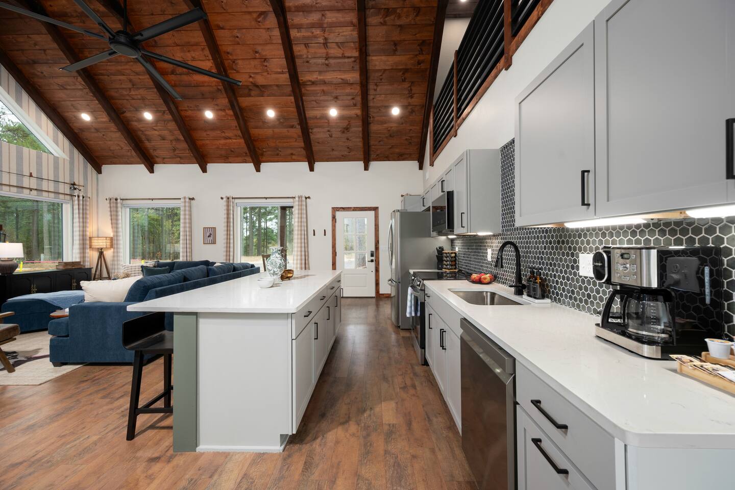 ✨ Hidden Oaks Hideaway - Where Luxury Meets Nonstop Fun in the Broken Bow Woods ✨ Welcome to Hidden Oaks Hideaway, a spacious 2,000 sq ft retreat tucked away on 1.5 acres of peaceful forest - perfect for families, friends, and group getaways. This modern cabin sleeps up to 15 guests with 4 bedrooms and 3 bathrooms, all designed for comfort, connection, and unforgettable fun. Step inside to soaring vaulted ceilings, large windows with serene forest views, and an open living area ideal for gathering. Cozy up by the stone fireplace or enjoy movie nights on the 65" Smart TV. The fully stocked kitchen includes: ☕ Keurig Coffee Maker 👩🏻🍳 Crock Pot, Blender, Mixer, Griddle, Toaster 🍴Plenty of Cookware, Utensils & Serveware Enjoy meals together with seating for 10 at the dining table plus 5 at the island - perfect for celebrations, holidays, and family feasts. 🌲 Outdoor Oasis Your private outdoor playground includes: 🏓 THE ORIGINAL Glow Pickleball / Basketball Court 🎬 Outdoor Movie Theater w/ Projector & Screen 🔥 Cozy Fire Pit Lounge ♨️ Cedar Sauna + Hot Tub on Lower Deck 🍔 Patio with Grill, Outdoor Dining Table 🍻 Covered Lounge Area w/ Outdoor Fireplace 🎨 Custom Broken Bow Mural 🛝 Kids’ Playground 🛶 Paddleboards, Kayaks & Life Jackets 🅿️ Parking for 6 vehicles + Trailer/Boat Space ⚡ EV Charger 🛏️ Bedrooms & Bathrooms - 1 King Suite w/ Sleeper Sofa & Ensuite Bath - 1 Queen Bedroom w/ Main Level Bathroom - 1 Double Queen Bedroom - 1 Bunk Room with 2 Full and 1 Twin Trundle Bed - Shared Upstairs Bathroom 🎮 Fun for Everyone! The upstairs loft game room is an entertainment paradise: 🥌 Shuffleboard 🥅 3-in-1 game table (foosball, air hockey, ping pong) 👾 2 arcade machines w/ 1,000+ classic games ♟️ Board games for all ages 🐾 Additional Amenities - Pet-friendly (fee applies) - High-speed WiFi - Pack ’n Play + highchair provided 📍 Location You’ll be close to everything Broken Bow has to offer: - 7 min – Hochatown dining & breweries - 8 min – Choctaw Landing Casino - 16 min – Broken Bow - 17 min – Beavers Bend State Park - 19 min – Broken Bow Lake 🌟 Perfect for Relaxation, Adventure & Memory-Making Whether you're soaking in the hot tub under twinkle lights, challenging friends to pickleball, or watching a movie under the stars, Hidden Oaks Hideaway is designed for connection, comfort, and unforgettable experiences. We’re committed to making your stay exceptional. If you need anything during your visit, we’re just a message away. 🌿 Before Booking Our cabin is nestled deep in beautiful Broken Bow forest. While we schedule regular professional pest control, sightings of insects or critters are still possible in wooded areas. Please keep doors closed and store food properly.
